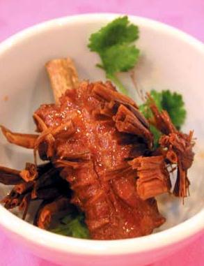 猪仔排肉鲜细嫩,经豆腐衣、稻草包裹烧熟,不仅成菜造型独特,而且稻香沁人,是安徽菜创新大赛获奖菜肴。