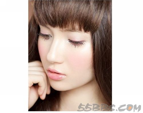 当然,妆容的重点在与睫毛的打造上,也不能够忽视颜色的搭配。说起可爱的妆容,首先联想到的就是粉色。的确如此,这款妆容的主打色便是粉色。利用粉色与白色的搭配来缔造瓷娃娃版的可爱妆容。