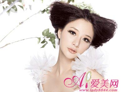 根根浓密的眼睫毛,虽说十分夸张,但却透着迷离空灵的摄魂眼神和几丝暧昧的柔美。 选用深色的传统粉状眼影,显色更强,平衡眼睛与夸张睫毛的组合。眼尾刻意描绘的白色眼线,好像天使翅膀一样,增加几分魅惑感,让你成为“万人迷”新娘!