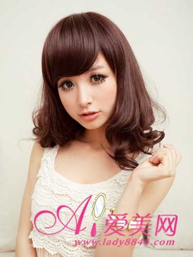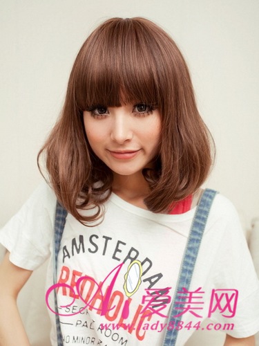 斜刘海多显了一分气质与成熟,而中长度的卷发也是许多美眉们的大爱款之一,往外延伸的卷度加上棕发后,更是一款知性又成熟的假发发型。