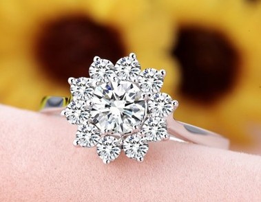 群镶款式总给人带来不一样的奢华感,副钻的光芒将主钻映射的更为闪耀。远看如同一颗大钻闪耀无限光芒。