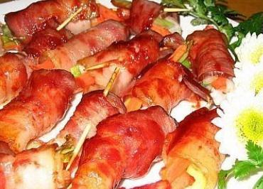 ②将猪肥膘肉切成比银圆略小些的片,每片厚0.07厘米,共12片,和瘦肉一并放在碗内,加酱油、糖、五香粉、绍酒抓匀,腌约3分钟,然后把每片肥膘肉分别夹入连着的两片瘦肉之间,用筷子将夹好的瘦肉片从中穿成一串(不要串的过紧),均匀地涂上生粉。