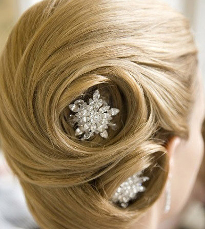 新娘发型需要美丽的发饰来装点,即使是同一款发型加上不同的发饰也会出现不同的风格,闪耀的钻石发箍,娇艳的大花发带,或者优雅的珍珠发卡,哪一种是即将成为新娘的你最喜欢的呢?拍婚纱照的时候也可以借鉴哦。
