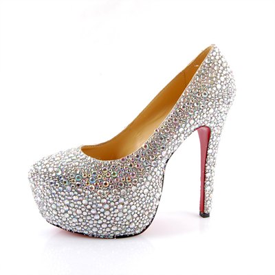 美丽的公主新娘还要穿上属于自己的那双“水晶”高跟鞋,它们能够拉长你的腿部线条,让你的双腿显得更加纤细。然而最重要的是能够为你的浪漫公主风起到画龙点睛的作用,让你在众目睽睽下释放迷人光彩,更加完美、更加难以忘怀!
