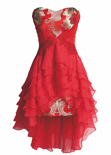 3. 丝缎质地的礼服红裙,最能展现亚洲女孩的娇嫩肤质。