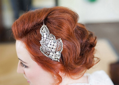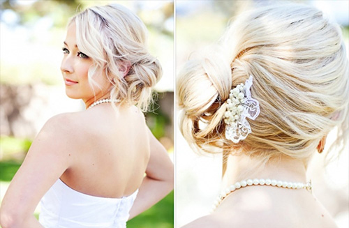 银色侧面盘发,搭配珍珠蕾丝头饰,让你做优雅新娘。