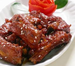 2 子排洗净、切块,加入a料抓拌一下,分别投入热油锅中炸成金黄色,捞出。