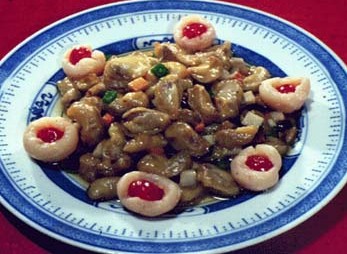 ②锅内放入上汤、盐、料酒、味精煮滚,用生粉水勾芡,淋上香油,浇在龙眼上即可。