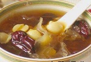 材料:桂圆肉12~15克,莲子(去心)12克,芡实10克,茯神9克,盐适量。