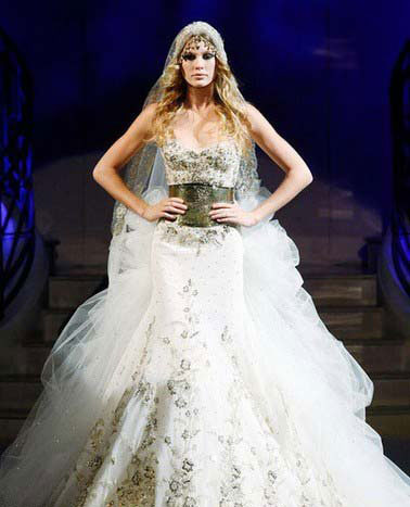 最爱秀场上只身但绚丽依旧的闪耀婚纱模特,金色的亮片,飘逸的裙摆,迷人视线的性感,都像万花筒一般倾泻在T台之上,但最吸引人的却是表象之下那份诱惑,风情万种,谁不想要?