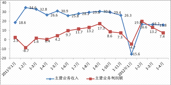 2011-2012年主营业务收入与利润总额同比增速 单位:%