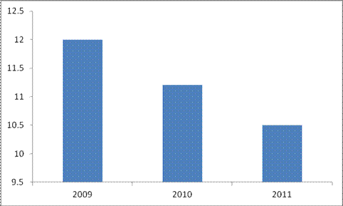 图 1 2009-2011年钢铁企业物流费用率(单位:%)